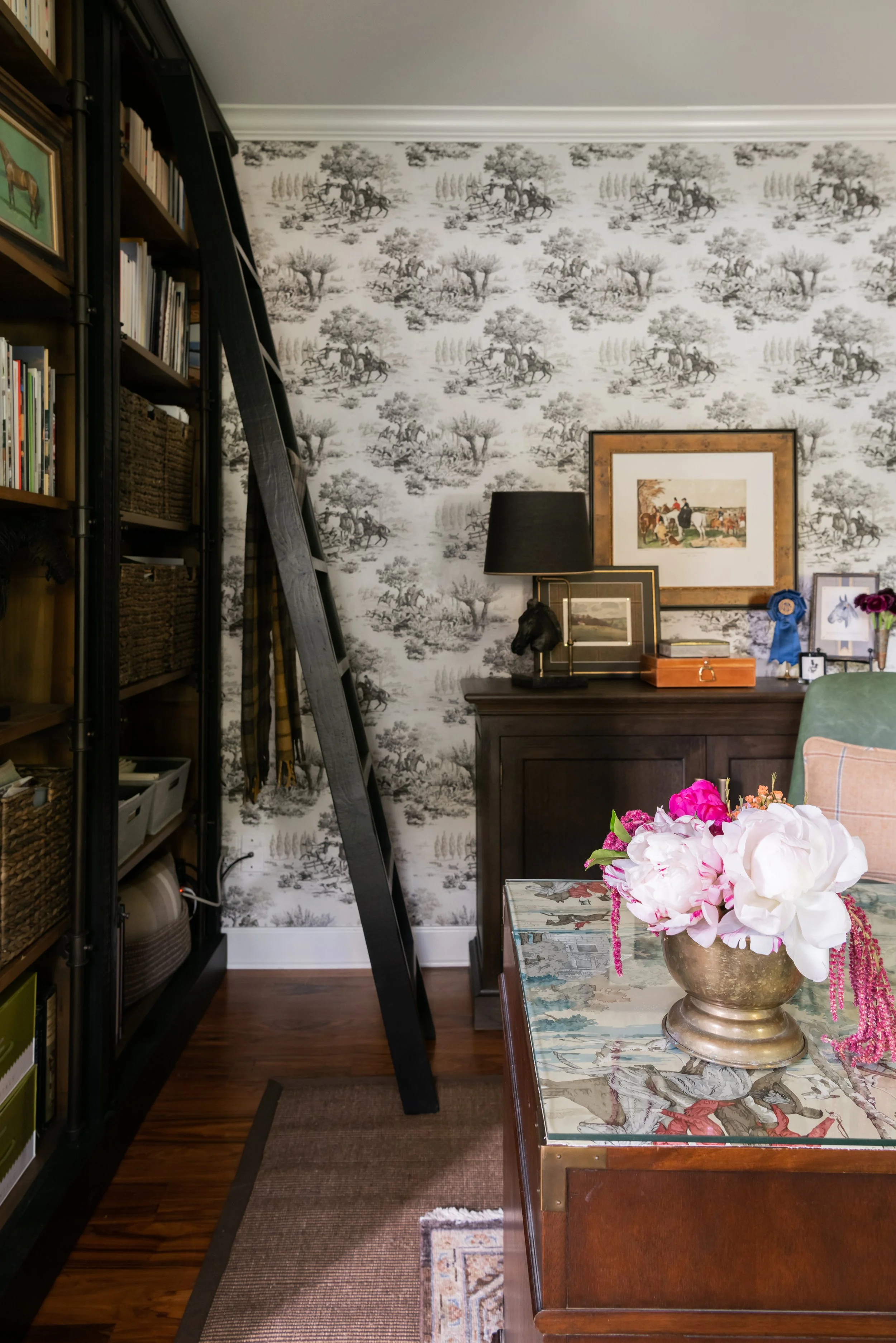 I have always wanted a bookshelf ladder like an old library. This is way better than the IKEA shelves I had before! I have storage almost to the ceiling and can finally organize my books and interior design samples in a way that helps me run my business more efficiently.